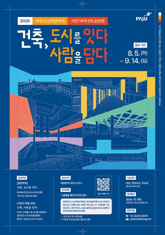 [뉴스스텝] 파주시는 오는 10월에 개최되는 '2025 파주시 건축문화제'와 연계해 ‘건축, 도시를 잇다 사람을 담다’를 주제로 시민 아이디어 공모전을 개최한다.