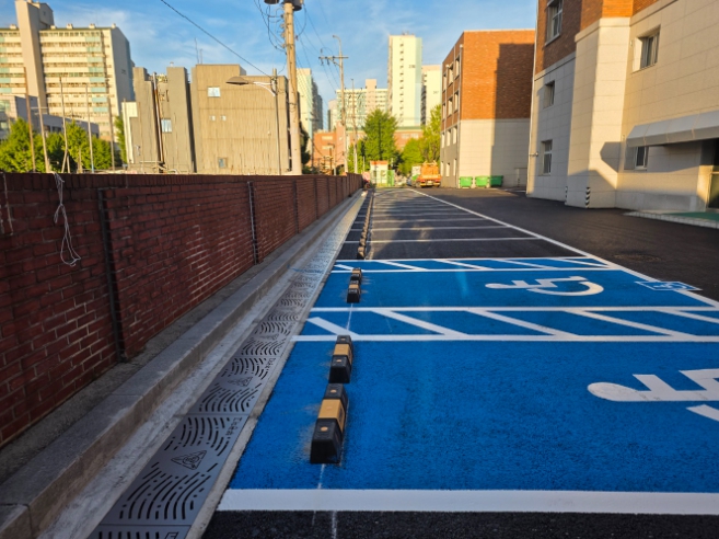 학교 주차장의 보도블록을 아스콘 포장으로 교체해 요철 및 침하 문제를 개선하고, 배수로를 설치해 노면 결빙으로 인한 사고 위험을 최소화했다.