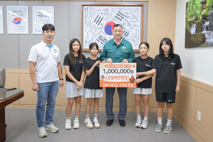 최원철 시장은 “이웃을 향한 따뜻한 마음을 행동으로 보여준 유에스태권도 수련생들과 지도자분들께 깊이 감사드린다”며 “기탁받은 성금은 수해로 어려움을 겪는 분들에게 신속히 전달하겠다”고 말했다.