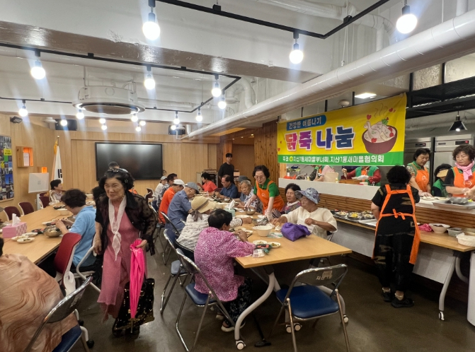 [뉴스스텝] 광주 동구지산1동 새마을부녀회(회장 김진숙)는 말복(8월9일)을 맞아 지난 8일 지산1동 마을사랑채에서 관내 어르신들을 모시고 정성 가득한 삼계탕 나눔 행사를 열었다고 밝혔다.