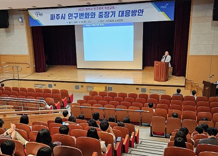 이날 교육은 서울대학교 인구정책연구센터 이상림 책임연구원이 맡아 ▲인구 위기 현황과 향후 전망 ▲한국의 2035년 인구 사건 ▲인구 변동과 자녀 교육 ▲파주시 인구 변동 특성과 향후 파주의 변화 등 4가지 주제를 중심으로 진행됐다. 특히 ‘2035년 인구사건’과 같이 다가올 인구 변곡점을 통해 지역사회가 직면할 구체적 도전과제를 제시하며, 파주시의 현실적 대응 방향을 짚었다.