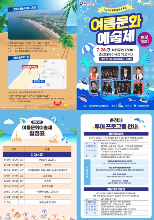이번 행사는 춘장대해수욕장운영협의회가 주최하고, 서천군과 신서천발전본부가 후원하는 지역 대표 여름문화축제로, 본격적인 여름 휴가철을 맞아 춘장대를 찾는 관광객과 지역 주민들에게 특별한 문화 체험 기회를 제공할 예정이다.
