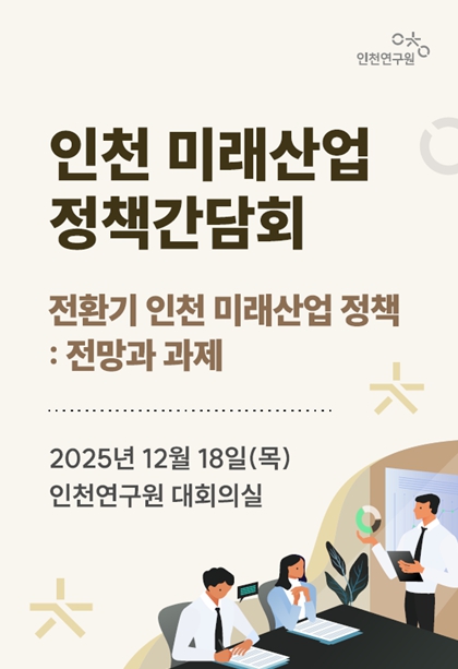 [뉴스스텝] 인천연구원은 2025년 12월 18일 오전 10시, 인천연구원 대회의실에서 '인천 미래산업 정책간담회'를 개최한다.