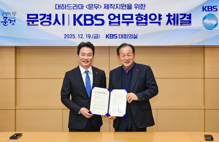 [뉴스스텝] 문경시와 KBS는 지난 19일 KBS홀에서 사극 ‘문무’ 제작 지원 및 촬영 협력을 위해 신현국 문경시장과 박장범 KBS 사장이 업무협약을 체결했다.