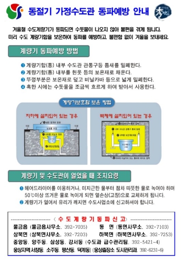 상하수도사업소 관계자는 “동파 예방은 시민들의 작은 관심에서 시작된다. 주민들의 협조가 동파 피해를 최소화할 수 있는 가장 중요한 열쇠”라고 강조했다.