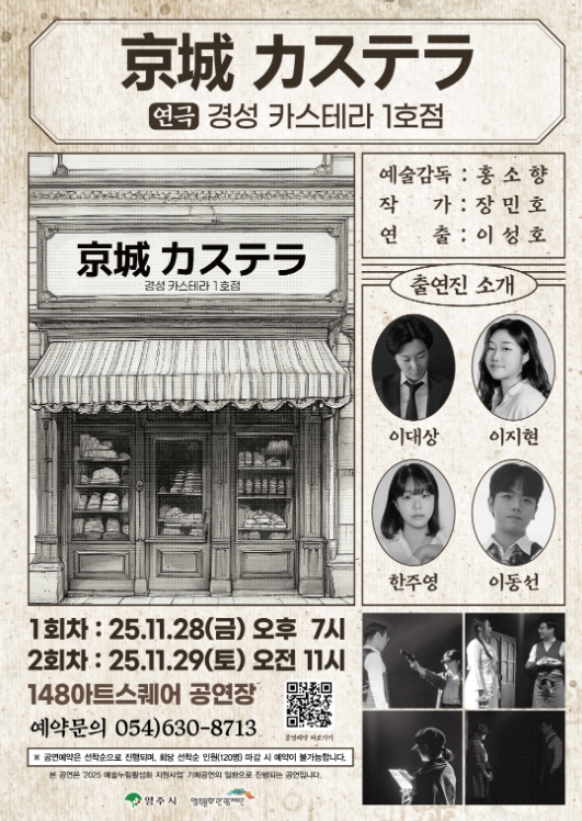 [뉴스스텝] (재)영주문화관광재단은 오는 11월 28일 오후 7시와 11월 29일 오전 11시, 148아트스퀘어 공연장에서 광복 80주년을 기념한 창작연극 '경성 카스테라 1호점'을 선보인다.