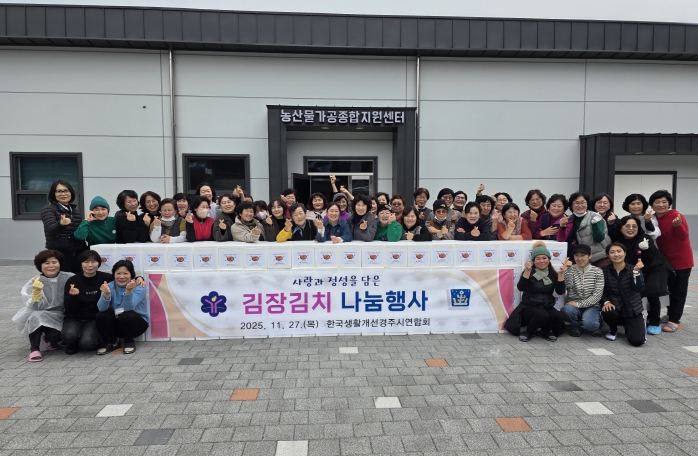 [뉴스스텝] 한국생활개선경주시연합회(회장 오정화)는 지난 27일 내남면 신농업혁신타운 내 농산물가공종합지원센터에서 지역 취약계층 지원을 위한 ‘김장김치 나눔행사’를 진행했다.