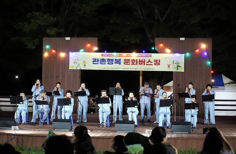 [뉴스스텝] 임실군이 관촌면 기초생활거점조성사업(2단계) 지역역량강화의 일환으로 추진하는 성과보고회가 지난 26일 관촌면 사선대 잔디광장에서‘관촌행복 문화버스킹’이란 이름으로 개최됐다.