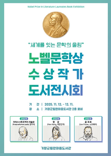[뉴스스텝] 거창군은 2025년 노벨문학상 발표를 기념하여 군민들의 높아진 문학적 관심을 반영하고 세계문학의 흐름을 조명하기 위해 오는 12일부터 12월 11일까지 한 달간 한마음도서관에서 ‘노벨문학상 수상 작가 도서 전시회’를 개최한다.