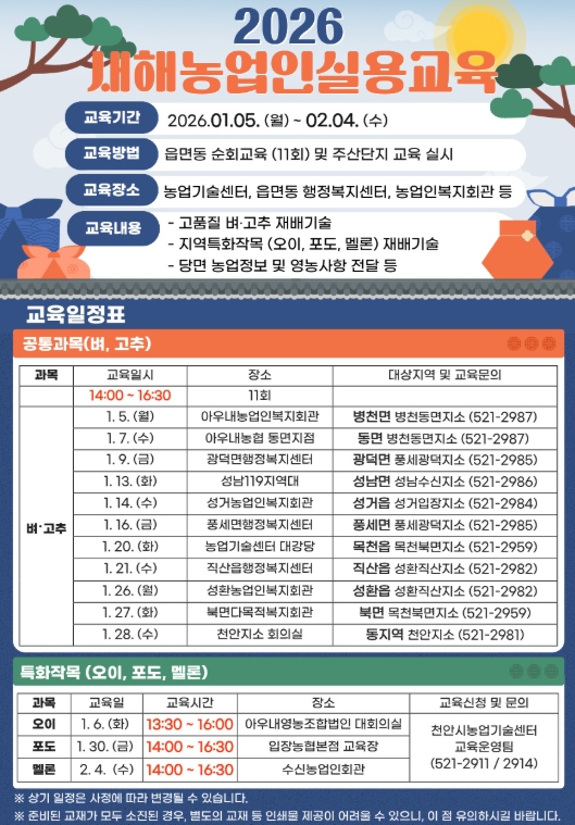 | ▲ 1. 천안시농업기술센터 새해농업인실용교육 홍보문. |
