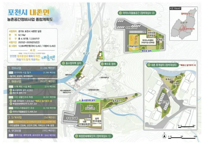[뉴스스텝] 포천시가 농림축산식품부가 추진한 ‘2025년 농촌공간정비 추가공모사업’에 선정되어, 2029년까지 내촌면 일원에서 추진할 공간정비사업 예산 129억 원을 확보했다.