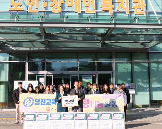 [뉴스스텝] 당진교육지원청은 22일 연말연시를 맞아 당진 지역의 노인 및 사회복지시설 8곳을 방문해 ‘사랑나눔 봉사활동’의 일환으로 떡국떡을 전달했다.