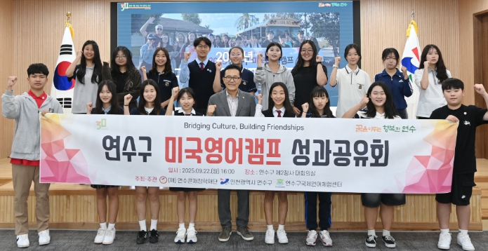 [뉴스스텝] 연수구는 지난 22일 연수구 제2청사에서 ‘연수구 미국영어캠프’ 성과공유회를 개최해 참가 장학생들의 학습 성과와 글로벌 경험을 함께 나누는 자리를 마련했다.