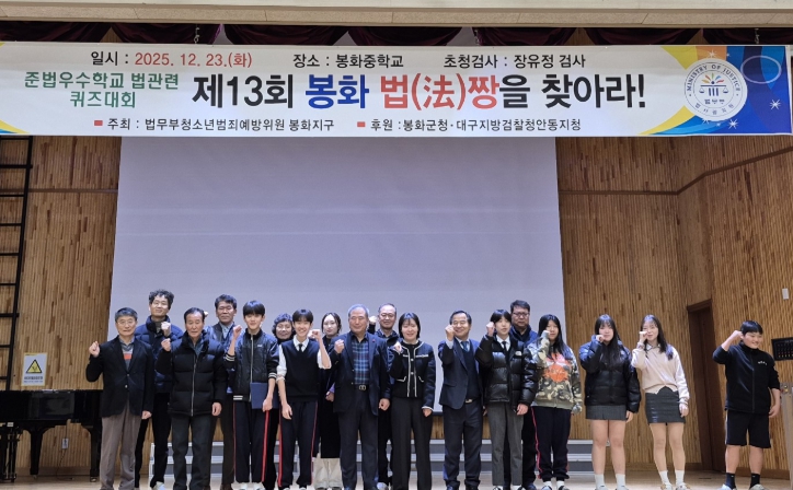 [뉴스스텝] 봉화군에는 지난 23일 법무부 청소년범죄예방위원 봉화지구협의회가 주최하는 2025년 준법우수학교 퀴즈대회‘제13회 봉화 법(法)짱을 찾아라’가 봉화중학교 대강당에서 성황리에 개최됐다.