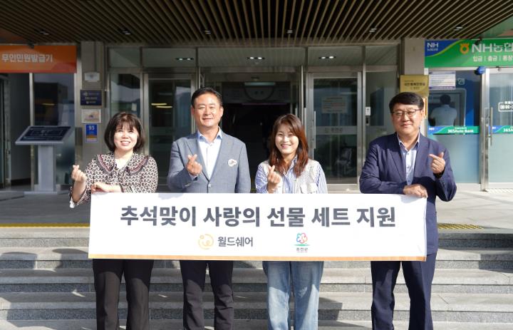 [뉴스스텝] 사단법인 월드쉐어는 9월 29일 홍천군청을 방문하여, 오뚜기 종합선물세트 150개(750만 원 상당)를 기탁했다.