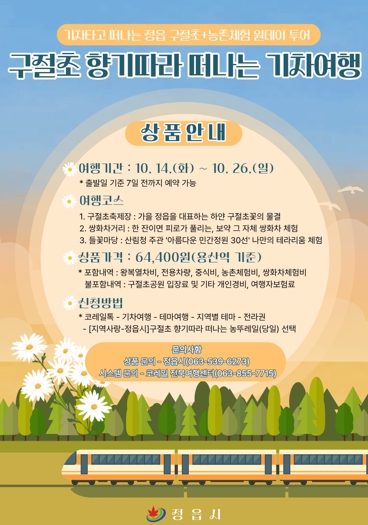 ▲ 기차 타고 떠나는 정읍 가을 정취…‘농뚜레일 투어’ 19일까지 참가자 모집 |