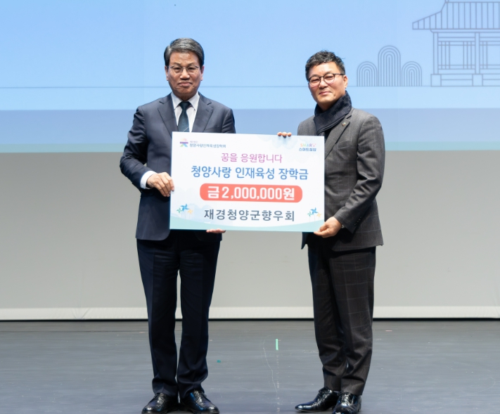 윤종훈 회장은 “비록 고향을 떠나 있지만, 청양의 발전과 아이들의 성장을 언제나 응원하고 있다”며, “작은 정성이지만 학생들이 꿈을 키워가는 데 도움이 되기를 바란다”고 전했다.