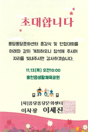 [뉴스스텝] 홍천군은 11월 13일, 홍천읍 생활체육공원에서 '제4회 퐁당퐁당 문화센터 종강식 및 단합대회'를 개최한다고 밝혔다.