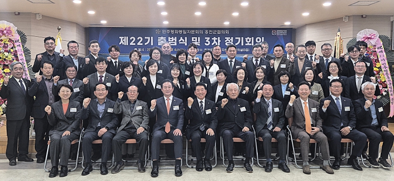 [뉴스스텝] 홍천군은 11월 14일, 홍천읍행정복지센터 3층 대회의실에서 ‘민주평화통일자문회의 홍천군협의회 제22기 출범식 및 제3차 정기회의’를 개최했다. 이번 출범식에는 신영재 홍천군수, 제22기 자문위원, 역대 회장 등 50여 명이 참석했다.