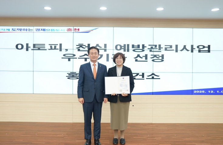[뉴스스텝] 홍천군보건소는 2025년 아토피, 천식 예방관리사업 추진 성과를 인정받아 질병관리청장 표창을 수상했다고 밝혔다.