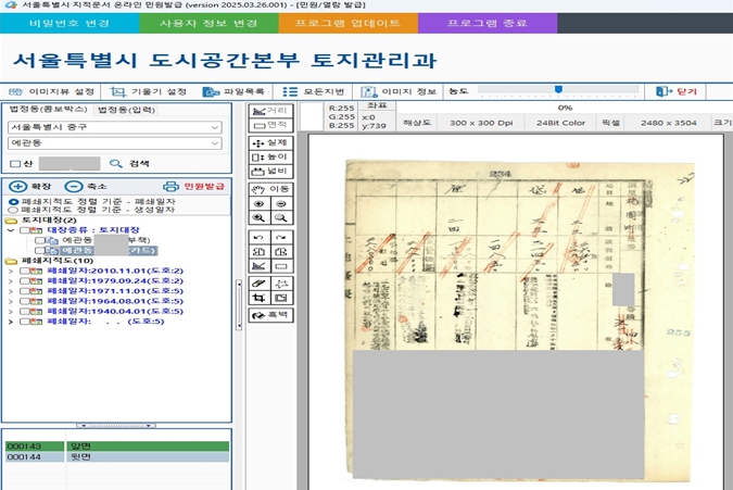 한편 시는 올해 서울기록원에 보관 중인 토지기록물 44만 건의 디지털화를 시작으로, 내년에는 2차 사업을 통해 56만 건을 추가 전산화한다. 앞서 시는 지난 2022년 흑백(저해상도)으로 저장돼 식별이 어려웠던 33만 건의 자료를 고화질 컬러로 개선해 행정 활용도를 높였다.