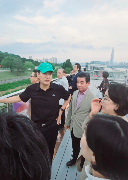 [뉴스스텝] 서울 강북구의회 조윤섭 의원(수유1동, 우이동, 인수동)은 8월 11일 오세훈 서울시장, 김원필 국민의힘 강북갑 당협위원장과 함께 오는 9월 정식 운항을 앞둔 한강버스 체험 시승식에 참석했다.