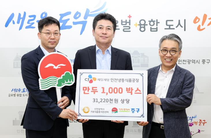 ▲ CJ제일제당(주) 인천냉동식품공장, 중구 이웃 위해 만두 1,000박스 기부 |