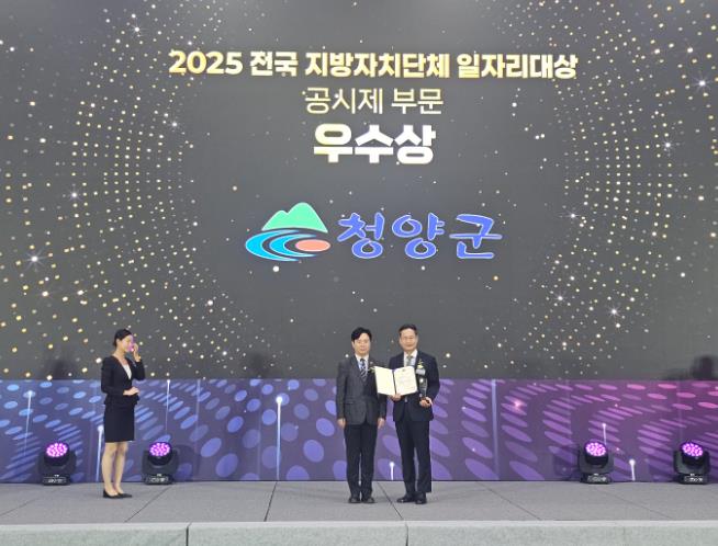 [뉴스스텝] 청양군은 지난 30일 청주오스코 2층 그랜드볼룸에서 열린 고용노동부 주관 ‘2025 전국 지방자치단체 일자리대상’ 공시제 부문에서 우수상을 수상했다고 밝혔다.