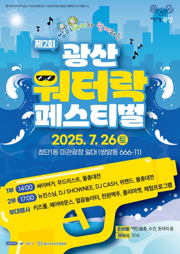 [뉴스스텝] 광주 광산구는 도심에서 즐기는 여름 축제, 제2회 광산워터락 페스티벌을 26일 오후 2시부터 첨단1동 미관광장(쌍암동 666-11)에서 첨단지구상인연합회와 공동으로 개최한다고 밝혔다.