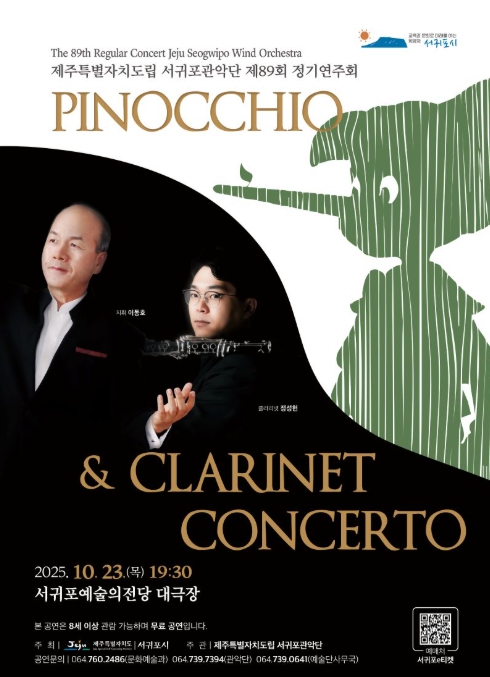 ‘클라리넷 협주곡 & 피노키오’를 주제로 진행되는 이번 정기연주회는 가을과 가장 잘 어울리는 감성적인 악기 클라리넷과 피노키오의 이야기를 관악의 음악으로 구현한 현대 교향모음곡을 선보인다.