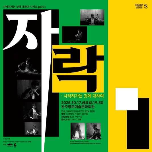 [뉴스스텝] 전북 완주군에 깊어가는 가을밤, 사라져가는 토속 민요의 숨결을 현대적인 감각으로 재조명하고 재해석한 특별한 국악 공연이 펼쳐진다. 완주문화재단은 오는 10월 17일, 완주향토예술문화회관에서 국악앙상블 불세출의 '자락: 사라져가는 것에 대하여' 공연을 개최한다