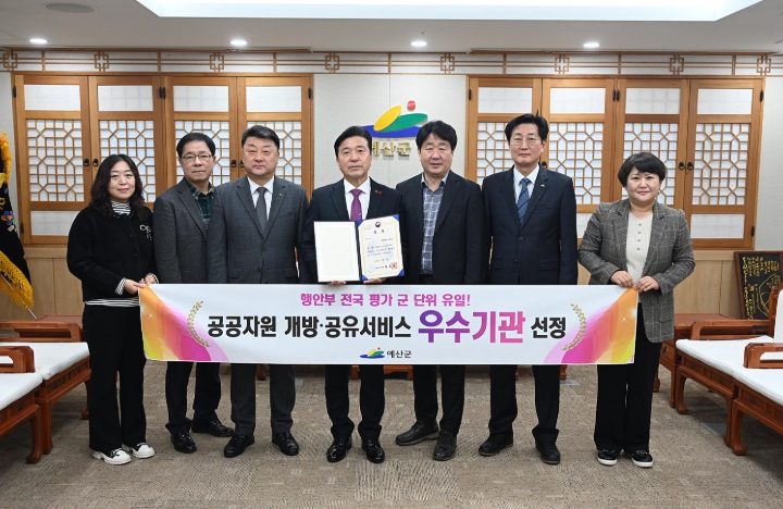 [뉴스스텝] 예산군은 행정안전부가 주관한 ‘2025년 공공자원 개방·공유서비스 실적평가’에서 우수 지자체로 선정돼 행정안전부 장관상을 수상했다고 밝혔다.