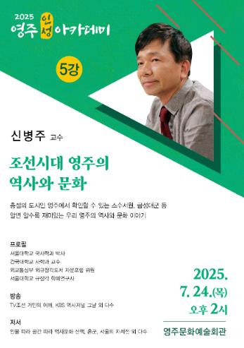 [뉴스스텝] 영주시는 오는 7월 24일 오후 2시, 영주문화예술회관에서 ‘7월 영주인성아카데미’ 강연을 개최한다. 이번 강연은 역사학자 신병주 교수를 초청해 ‘조선시대 영주의 역사와 문화’를 주제로 진행된다.
