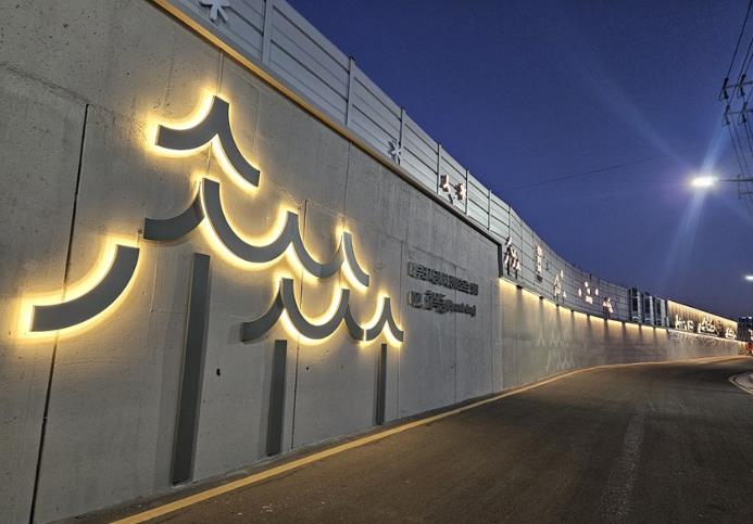 [뉴스스텝] 대구 동구청은 최근 효목지하차도에서 효목네거리 방향으로 설치되어 있는 옹벽 및 방음벽에 공공디자인을 접목한 경관개선사업을 마무리했다.