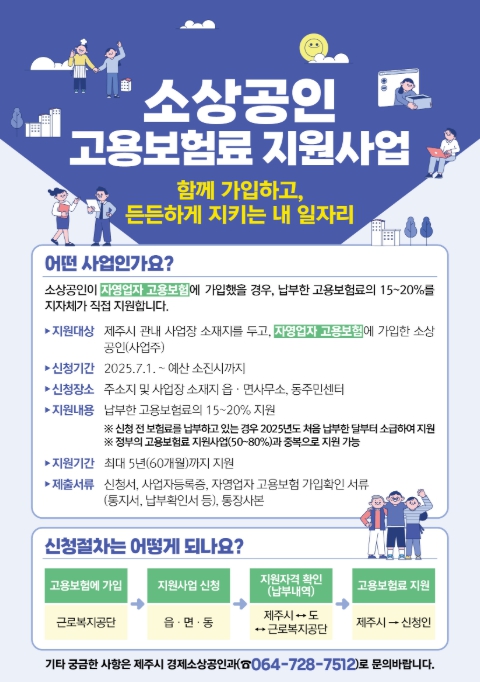 [뉴스스텝] 제주시는 지역 소상공인의 사회안전망을 강화하고 출산 후 소득 단절 문제를 해소하기 위해 ‘소상공인 고용보험료 지원사업’과 ‘1인 소상공인 출산급여 지원사업’을 연중 신청받는다.