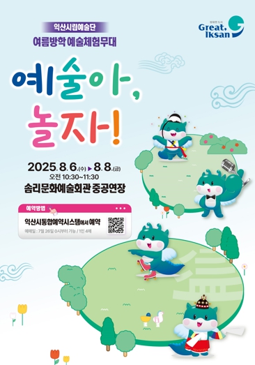 김강희 익산예술의전당 관장은 "아이들이 예술을 체험하며 더 밝고 건강하게 성장하길 바란다"며 "가족이 함께하는 뜻깊은 여름방학이 되길 기대한다"고 말했다.