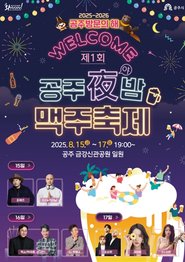 [뉴스스텝] 공주시는 시민과 관광객이 함께 즐길 수 있는 시민 참여형 야간 축제인 ‘제1회 공주야(夜)밤 맥주축제’를 오는 8월 15일부터 17일까지 3일간 금강신관공원 일원에서 개최한다고 밝혔다.