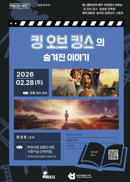 [뉴스스텝] 부천시는 책동네31과 협력해 오는 2월 28일 오후 3시, 부천시립상동도서관에서 애니메이션 ‘킹 오브 킹스’를 연출한 장성호 감독과 함께하는 ‘책동네31 특별 북토크’를 연다.