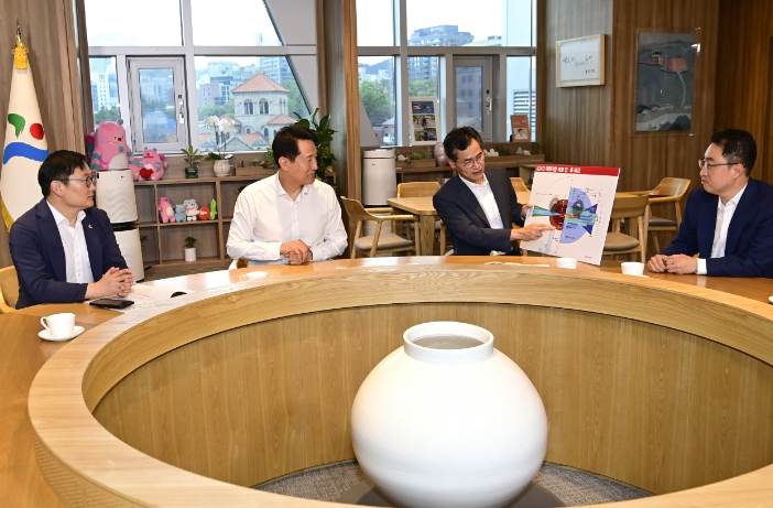 ▲ 오세훈 서울시장에게 ICAO 기준 완화를 건의하는 이기재 양천구청장과 허훈 의원 |