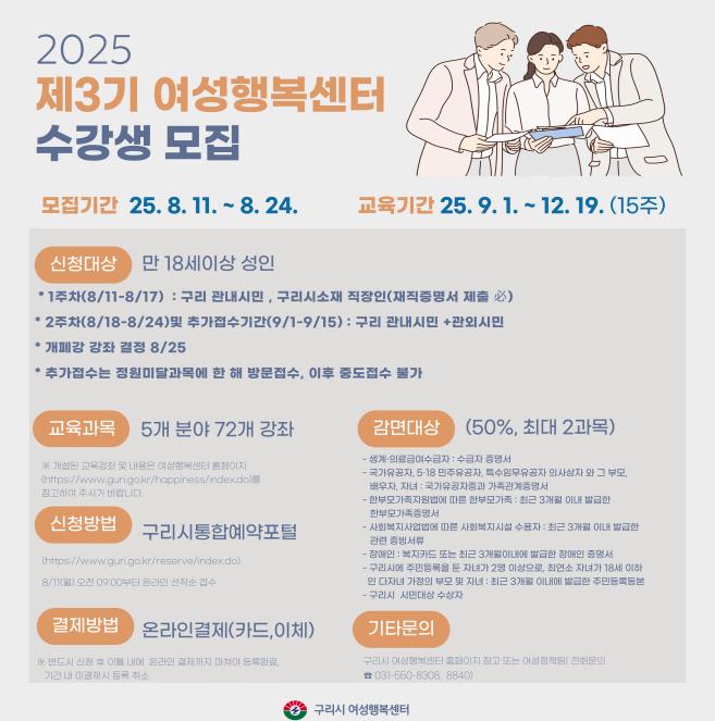 ▲ 구리시 2025년 3기 여성행복센터 교육프로그램 운영 |