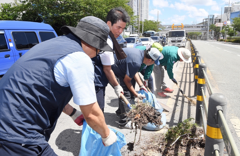 ▲ 동래구, 중앙분리대 잡초 제거 등 “환경정비 활동” 벌여 |