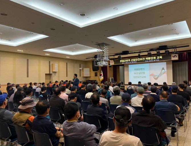 [뉴스스텝] 부산 남구는 지난 26일 구청 1층 대강당에서 현업근로자 등 120여 명을 대상으로 산업안전보건 역량 강화 교육을 실시했다고 밝혔다.