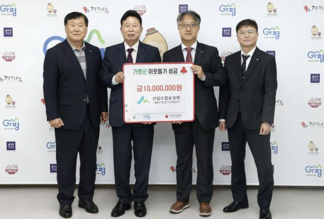 [뉴스스텝] 산림조합중앙회 서울인천경기지역본부는 13일 가평군청을 방문해 지역의 어려운 이웃을 돕기 위한 성금 1천만 원을 기탁했다.
