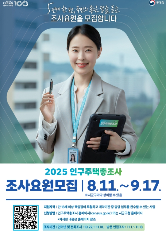 ▲ , ‘2025년 인구주택총조사’ 조사요원 84명 모집 |