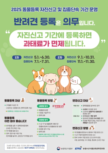 자진신고 기간 종료 후인 11월 1일부터 30일까지는 집중단속이 진행되며, 미등록 시 100만 원 이하, 변경 신고 미이행 시 50만 원 이하의 과태료가 부과된다.