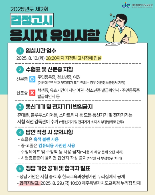 ▲ 2025년도 제2회 초졸·중졸·고졸 검정고시 응시자 유의사항 안내문 |
