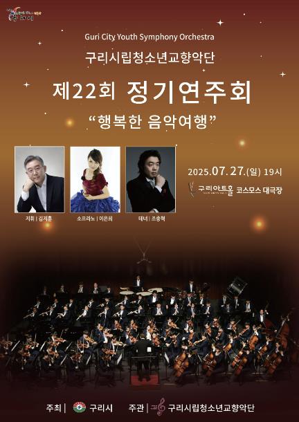 [뉴스스텝] 구리시는 7월 27일 오후 7시 구리아트홀 코스모스 대극장에서 제22회 구리시립청소년교향악단 정기연주회를 개최한다.