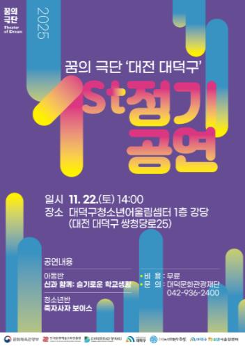 [뉴스스텝] 대덕문화관광재단은 오는 22일 대덕구청소년어울림센터에서 ‘2025 꿈의 극단 대덕구 정기공연’을 개최한다고 밝혔다.