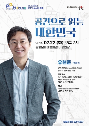 [뉴스스텝] 남원시는 22일 오후 7시, 춘향문화예술회관 대공연장에서 대한민국을 대표하는 건축가 유현준 교수를 초청하여 “공간으로 읽는 대한민국”이라는 주제로 강연을 개최한다.