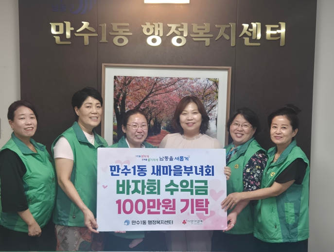 전달된 후원금은 만수1동 새마을부녀회 일일 주점 수익금으로, 우리 동 홀몸 어르신, 장애인을 비롯한 취약계층 지원을 위해 사용될 예정이다.